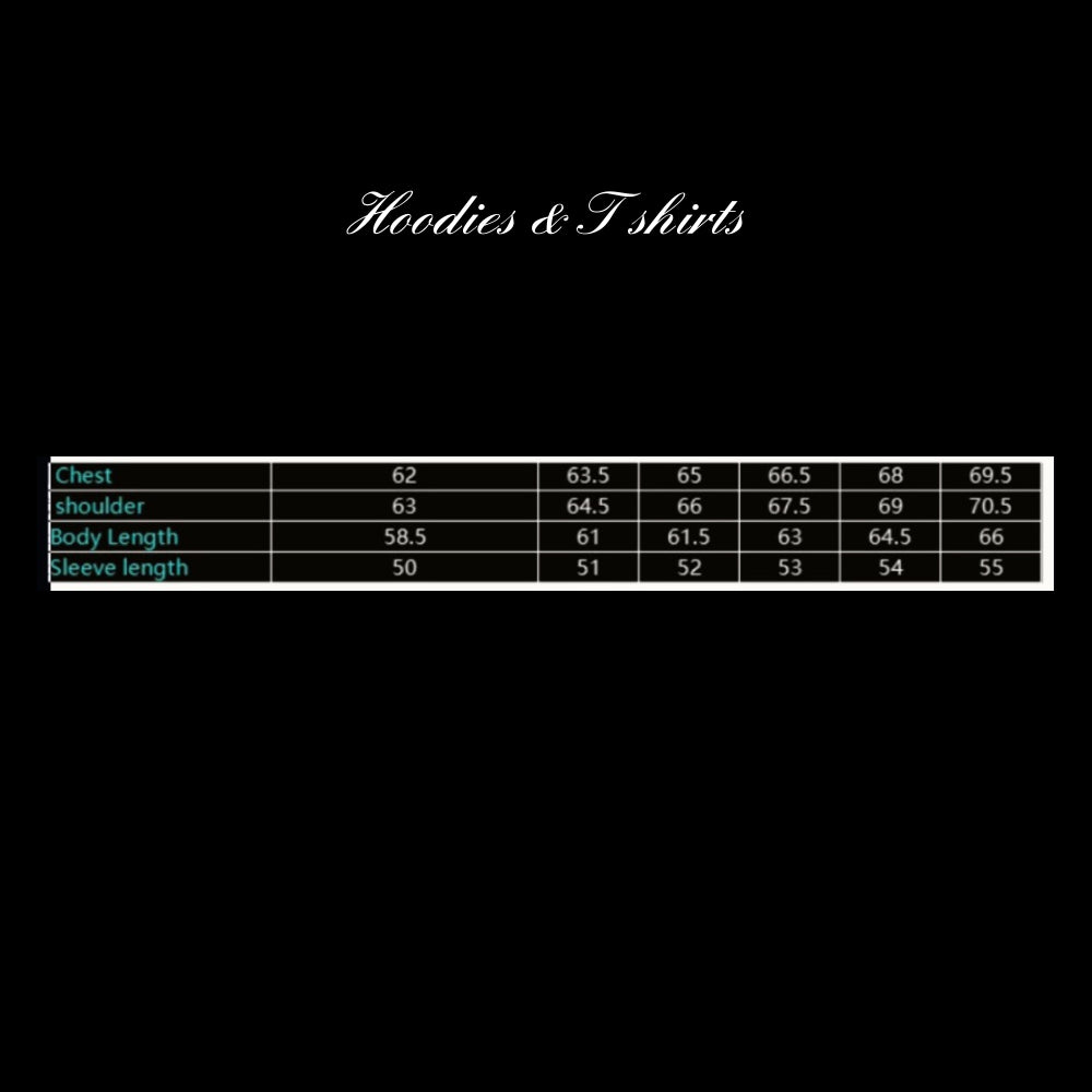 USE OUR SIZE GUIDE BELOW FOR HOODIES & T-SHIRTS, ACCESSORIES ARE UNISEX (ONE SIZE FIT ALL).